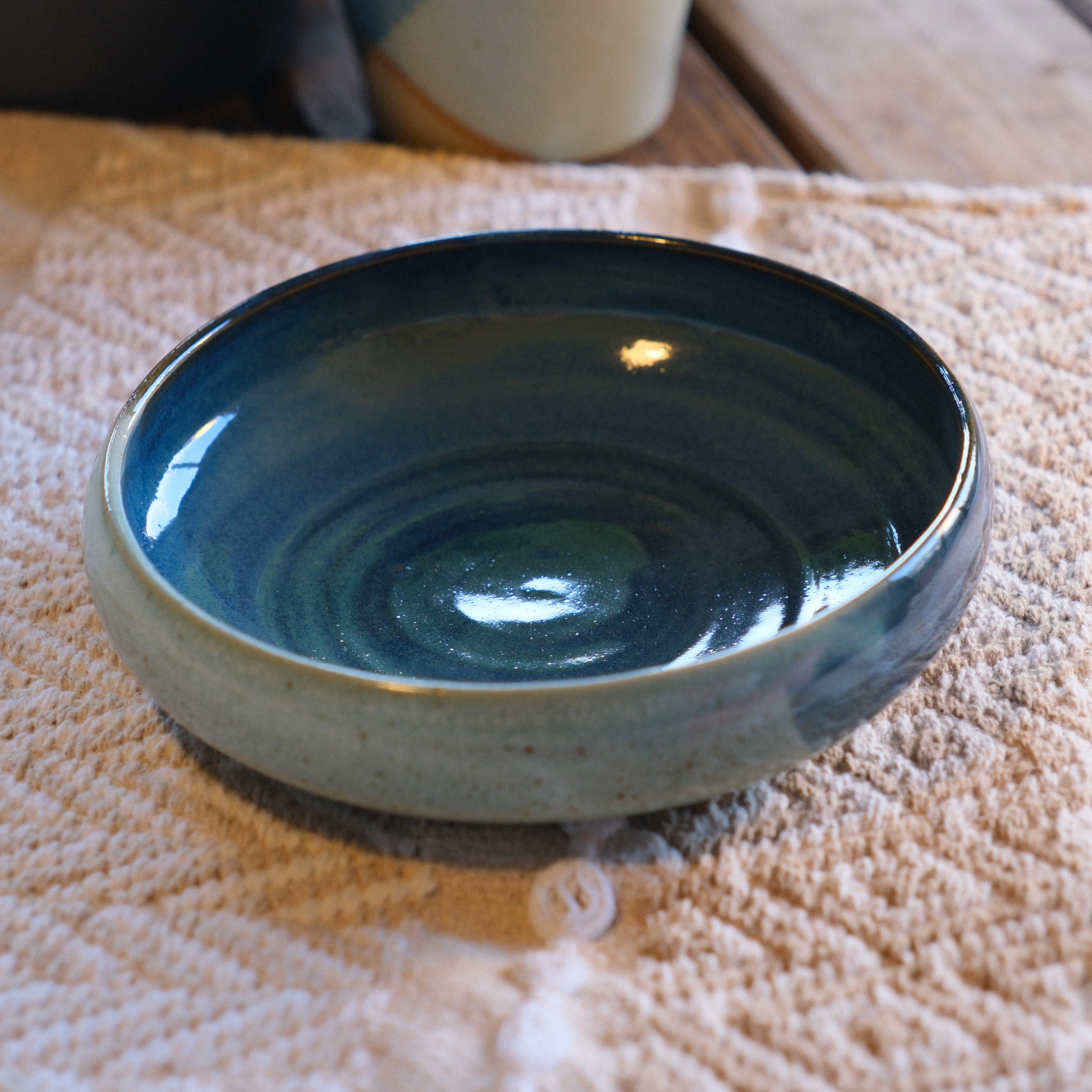 ✔ Finition : Émail bleu foncé et vert d’eau